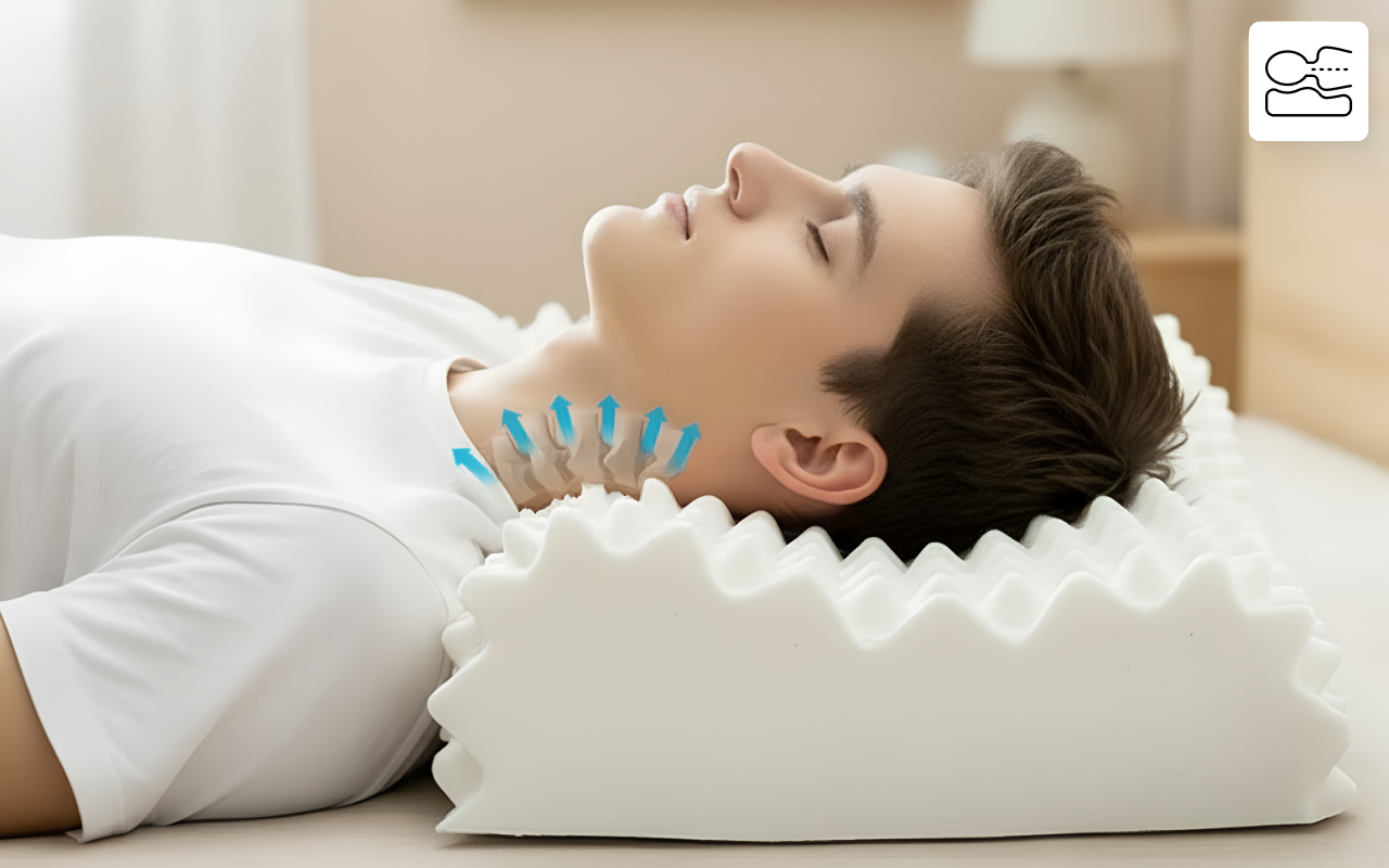 Adapta-se naturalmente ao formato da sua cabeça e pescoço para melhor alinhamento. Sinta a redução da pressão, ajudando a aliviar a rigidez durante a noite.