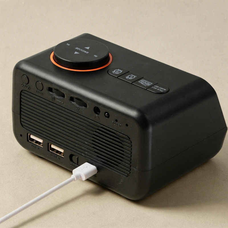 Verifique temperatura, umidade e calendário sempre que olhar para o relógio. As duas portas USB tornam o carregamento de dispositivos rápido e sem complicações.