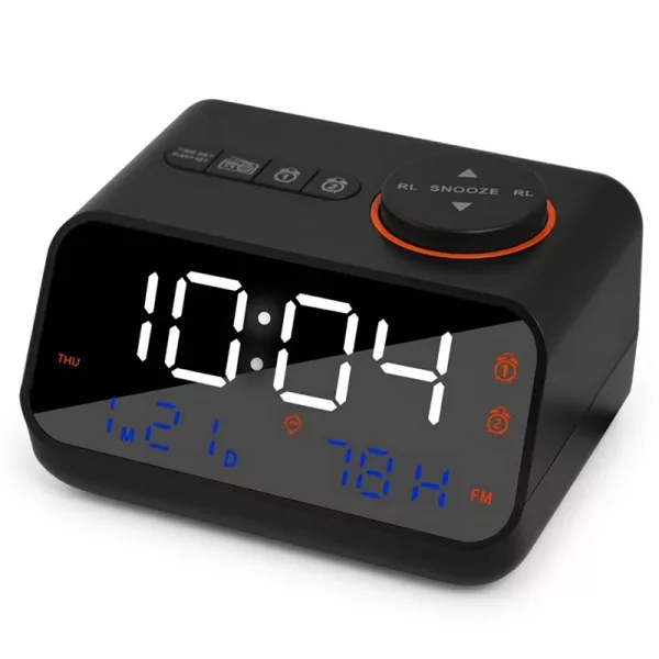 Viajo a trabalho e trouxe este relógio para o meu pequeno apartamento. Ele me mantém organizada com data e hora, e o rádio torna as manhãs menos solitárias.