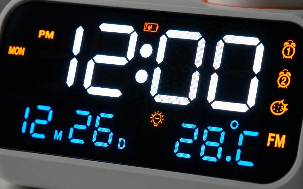 Os grandes números em LED são fáceis de ler tanto de dia quanto de noite. Ajuste o brilho para que ele nunca atrapalhe o seu sono ou a sua manhã.