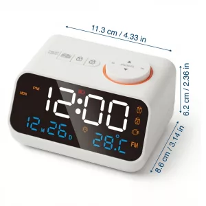 Deixo este relógio na minha mesa de cabeceira. A tela com brilho ajustável é suave para os meus olhos e as portas USB economizam espaço ao carregar meu telefone e tablet.