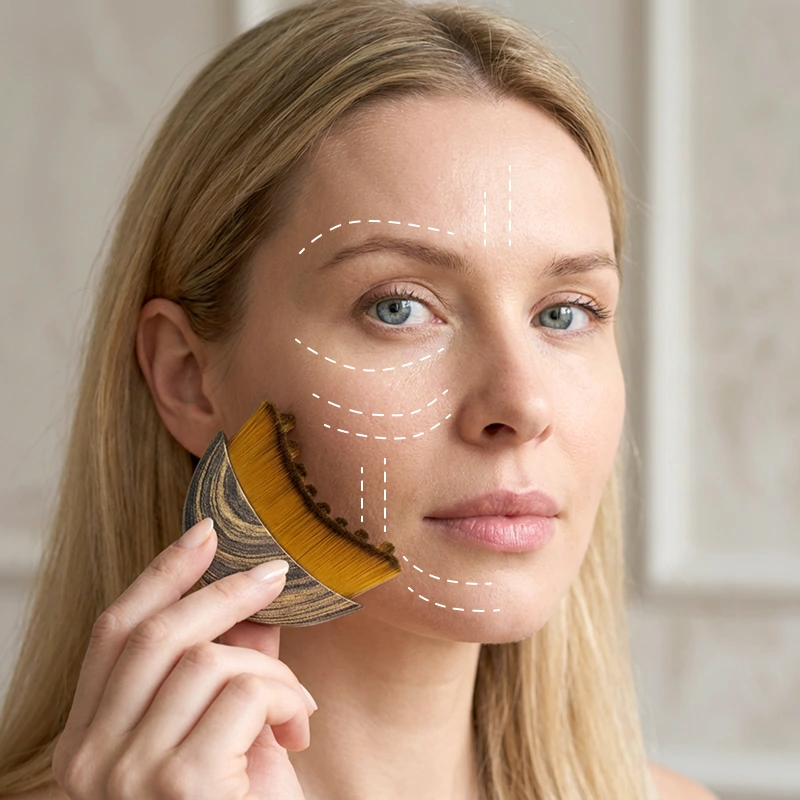 Esta ferramenta deixa meu rosto mais firme em minutos. As cerdas são suaves e, depois de uma semana, minha pele parecia mais iluminada. É simples e muito confortável de segurar.
