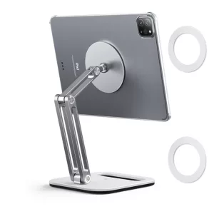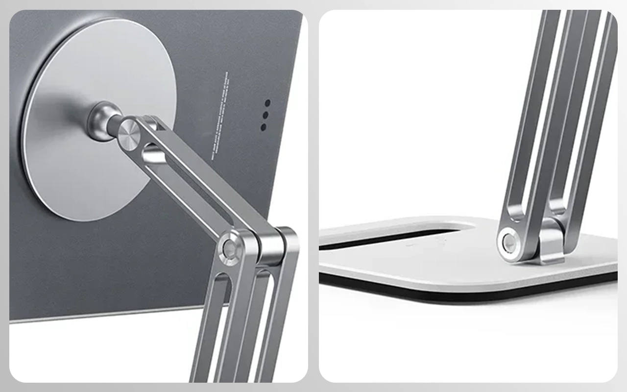 Juntas flexíveis permitem inclinar ou girar conforme necessário. Encontre sempre a posição perfeita para leitura, desenho ou chamadas de vídeo.