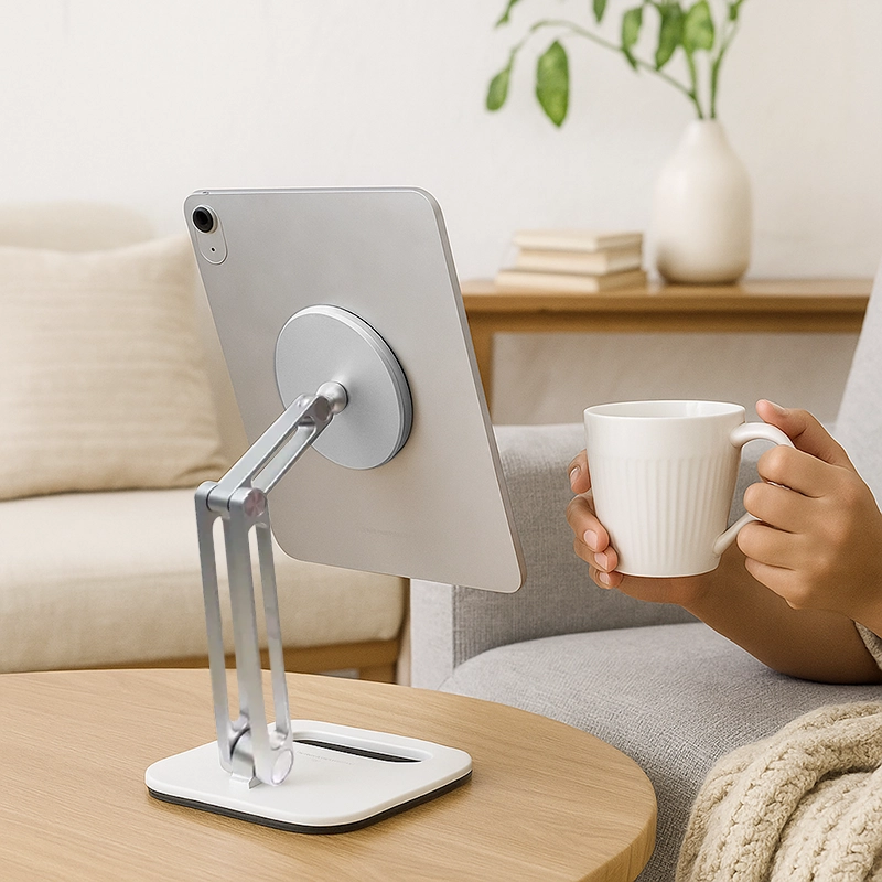 Uso o suporte todos os dias para chamadas de vídeo, e ajustar o ângulo é super fácil. Ele segura meu tablet firmemente, não importa como eu mexa.