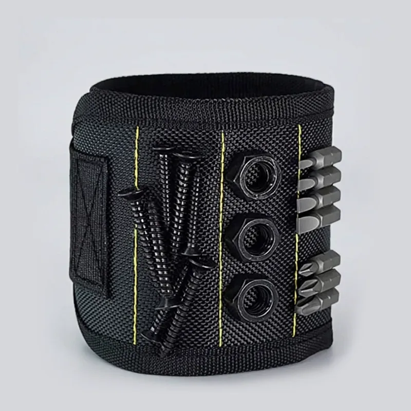 Faço manutenção em computadores e uso esta faixa para segurar parafusos minúsculos. Ímãs fortes os mantêm alinhados, e a alça macia não irrita a minha pele.