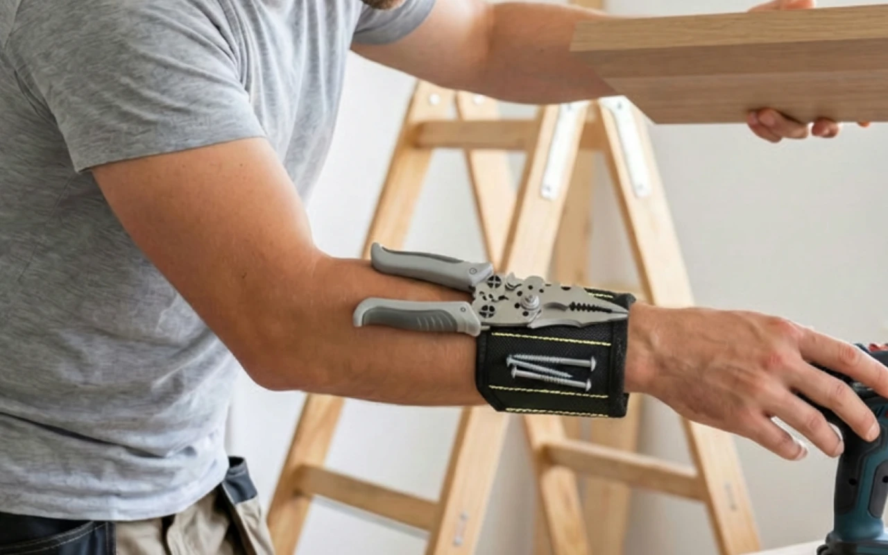 A pulseira Ortorex mantém parafusos e pontas de broca sempre por perto com segurança. Ímãs fortes impedem que pequenas peças caiam atrás dos móveis. A alça leve se ajusta à maioria dos braços sem escorregar. Conclua os projetos domésticos mais rápido porque tudo o que você precisa fica organizado.