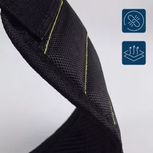 A pulseira para ferramentas usa malha respirável para evitar suor e irritação na pele. O fecho ajustável serve em pulsos de todos os tamanhos.
