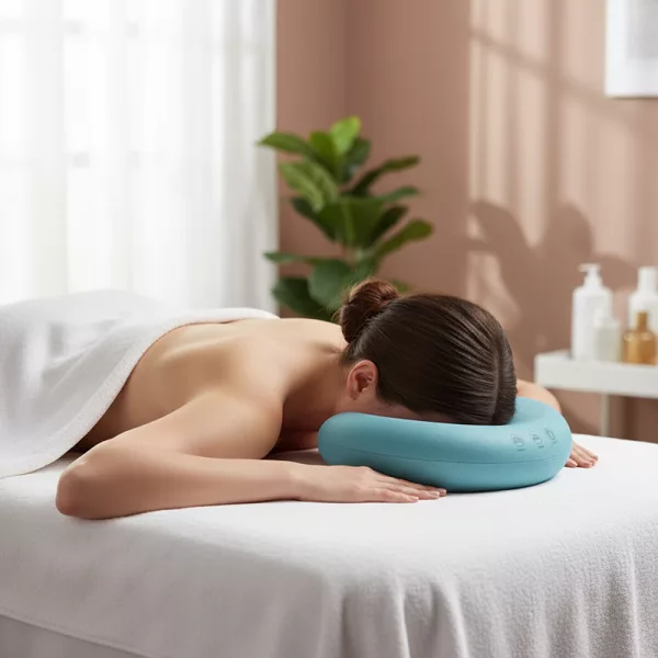 Descanse tranquilamente enquanto desfruta de um relaxamento reconfortante. O corte exclusivo proporciona um apoio suave sem pressionar as bochechas. Cada momento ajuda a aliviar a tensão e deixa seu pescoço renovado. Projetado para uso doméstico e profissional em spas.