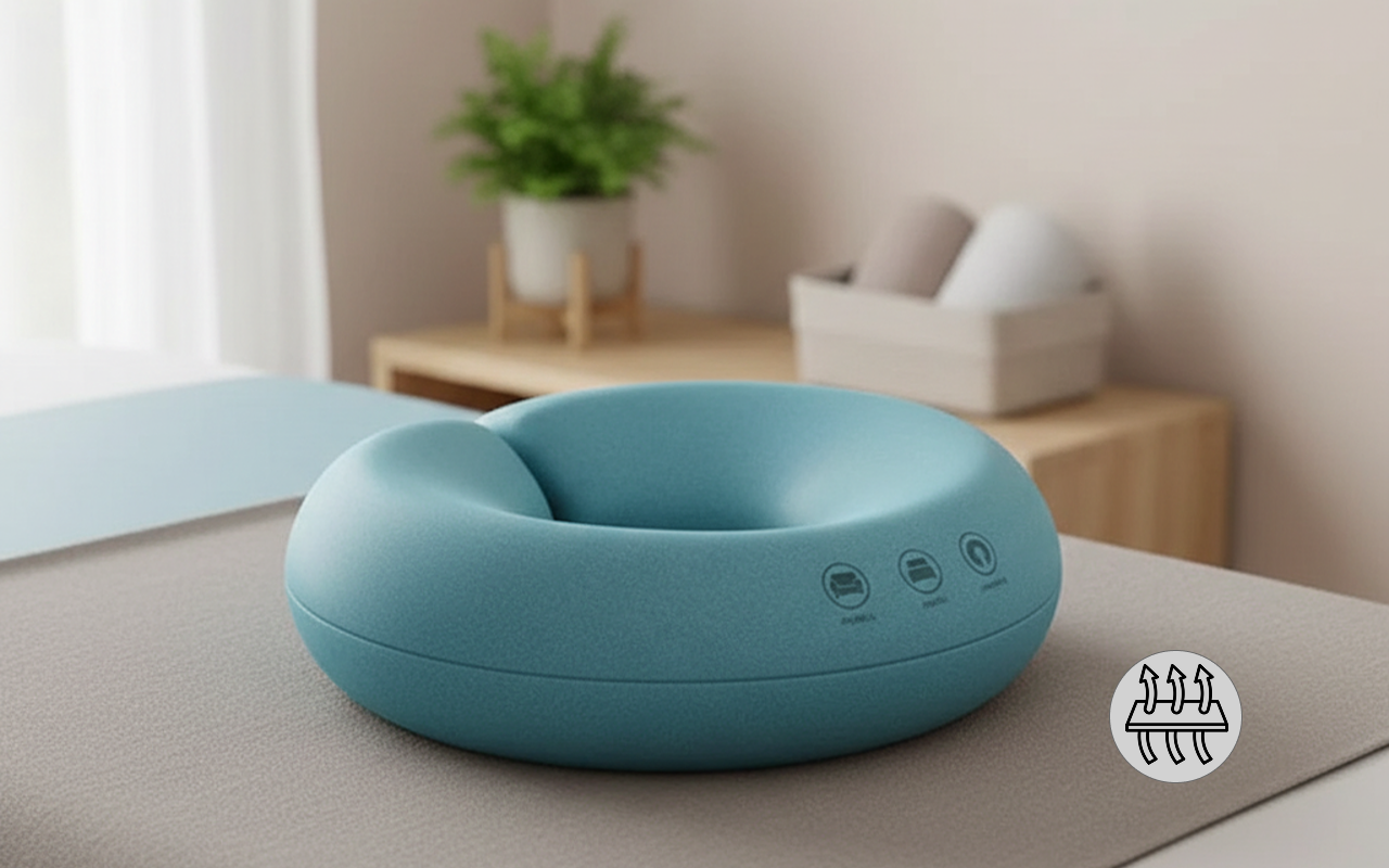 O travesseiro Ortorex permite a passagem de ar, proporcionando uma experiência fresca e seca.
