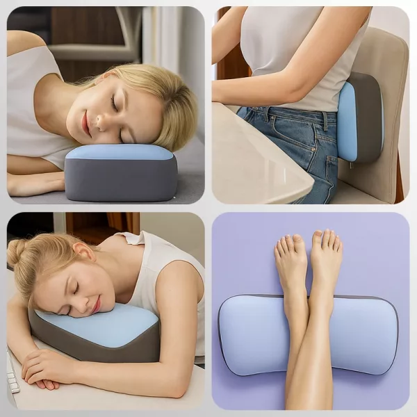 Passo horas sentada trabalhando. Descansar nesse travesseiro durante as pausas alivia a tensão no pescoço. Amo a superfície refrescante também!