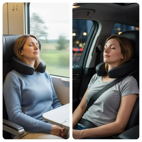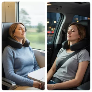 Minhas viagens de carro ficaram muito mais confortáveis com este travesseiro de pescoço. Cabe na minha mochila e consigo limpar manchas de café sem problema.