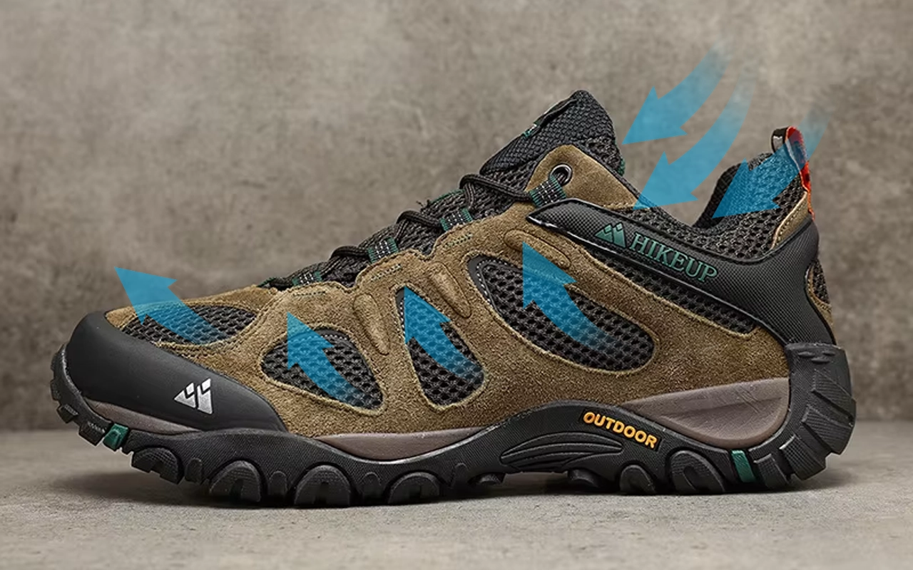 Ótimo para caminhos molhados e enlameados. A tela permite boa ventilação, então não tenho mais pés suados, mesmo em dias quentes.