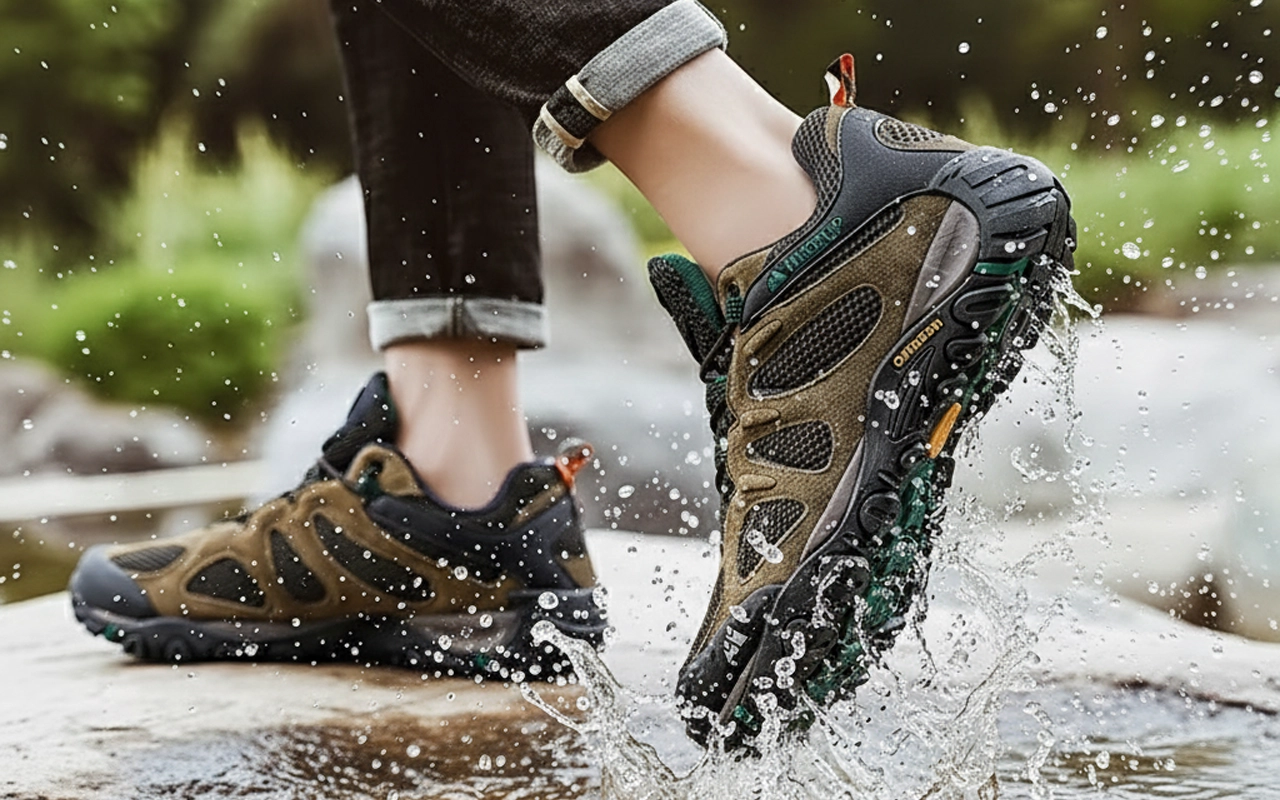 A proteção contra respingos funcionou perfeitamente durante uma chuva surpresa. As meias ficaram secas e a aderência nas pedras molhadas foi impressionante.