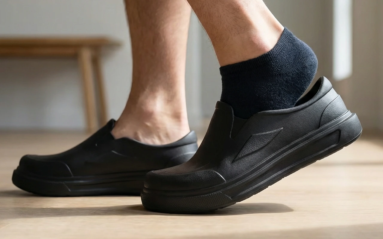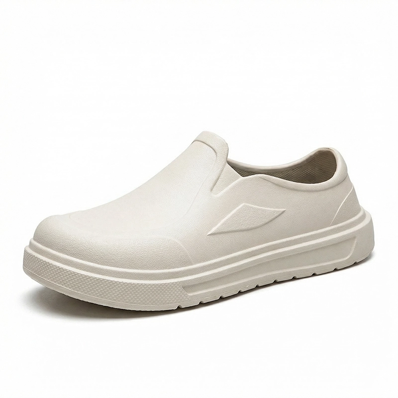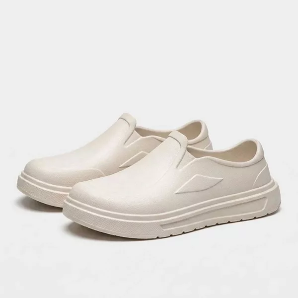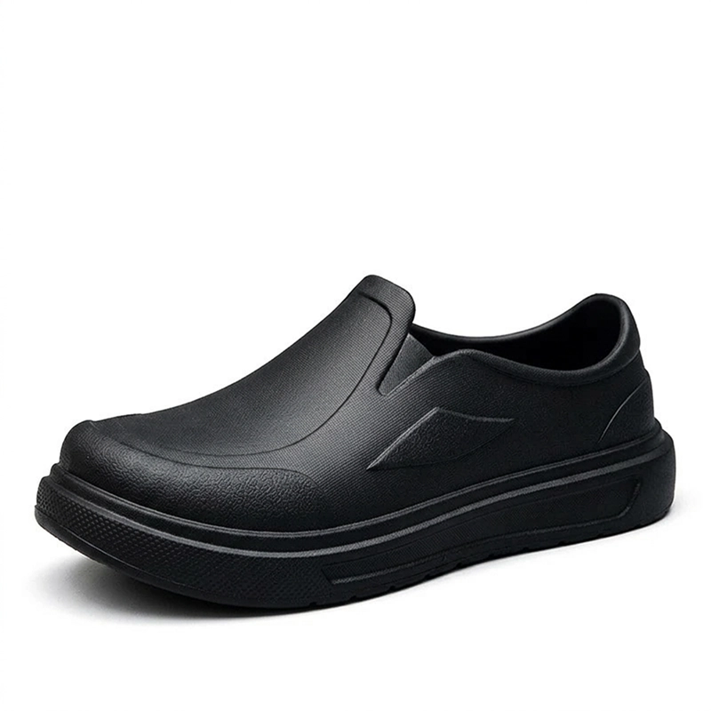 Fico em pé o dia todo em um armazém. Estes sapatos sem cadarço são confortáveis, ficam secos ao carregar mercadorias na chuva e não escorregam em pisos lisos.