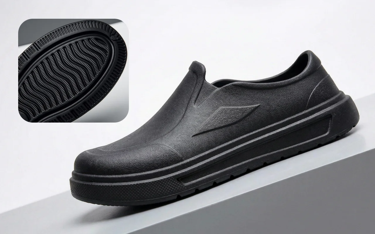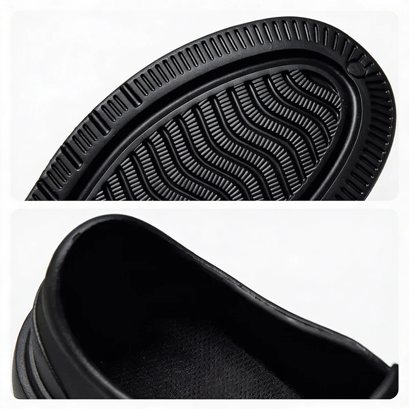 Caminhe com confiança em caminhos molhados ou pisos escorregadios sem hesitar. A sola especial adere às superfícies para que você nunca perca o equilíbrio.
