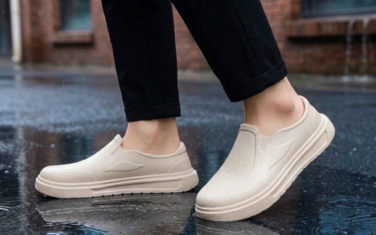 Comprei estes para os afazeres de fim de semana. Eu só calço e vou. Eles lidam bem com poças, estacionamentos molhados e até pisos escorregadios de supermercado sem preocupação.