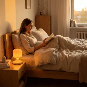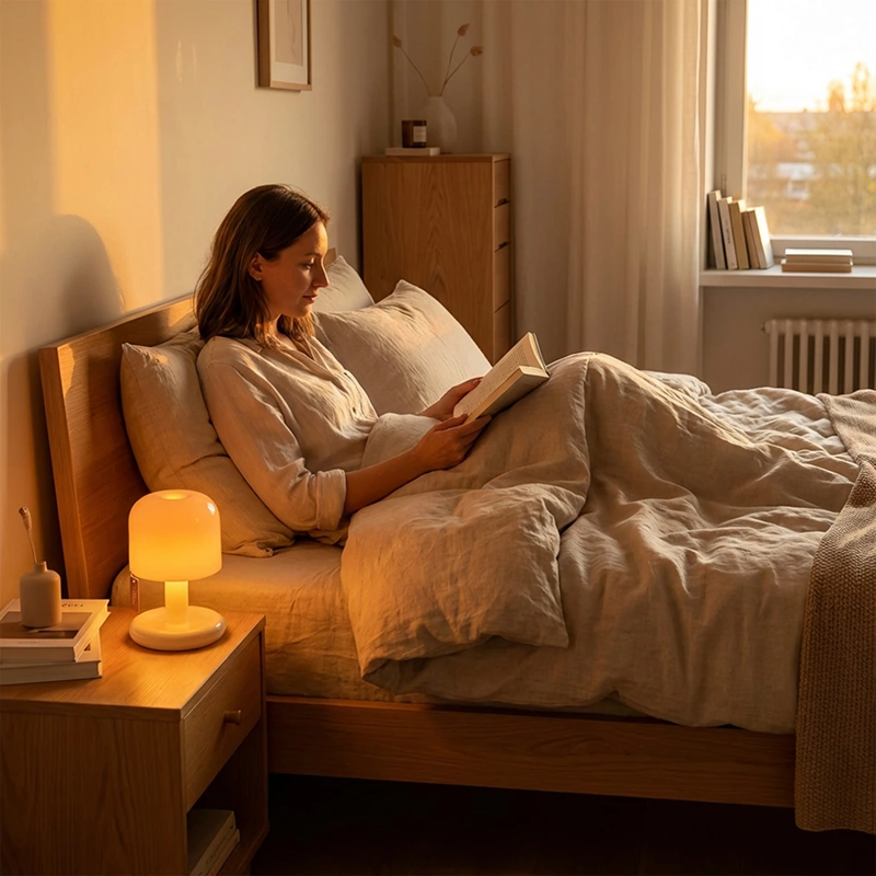 Comprei este mini abajur para a mesa de cabeceira e adorei. O brilho suave me ajuda a relaxar sem acordar ninguém.