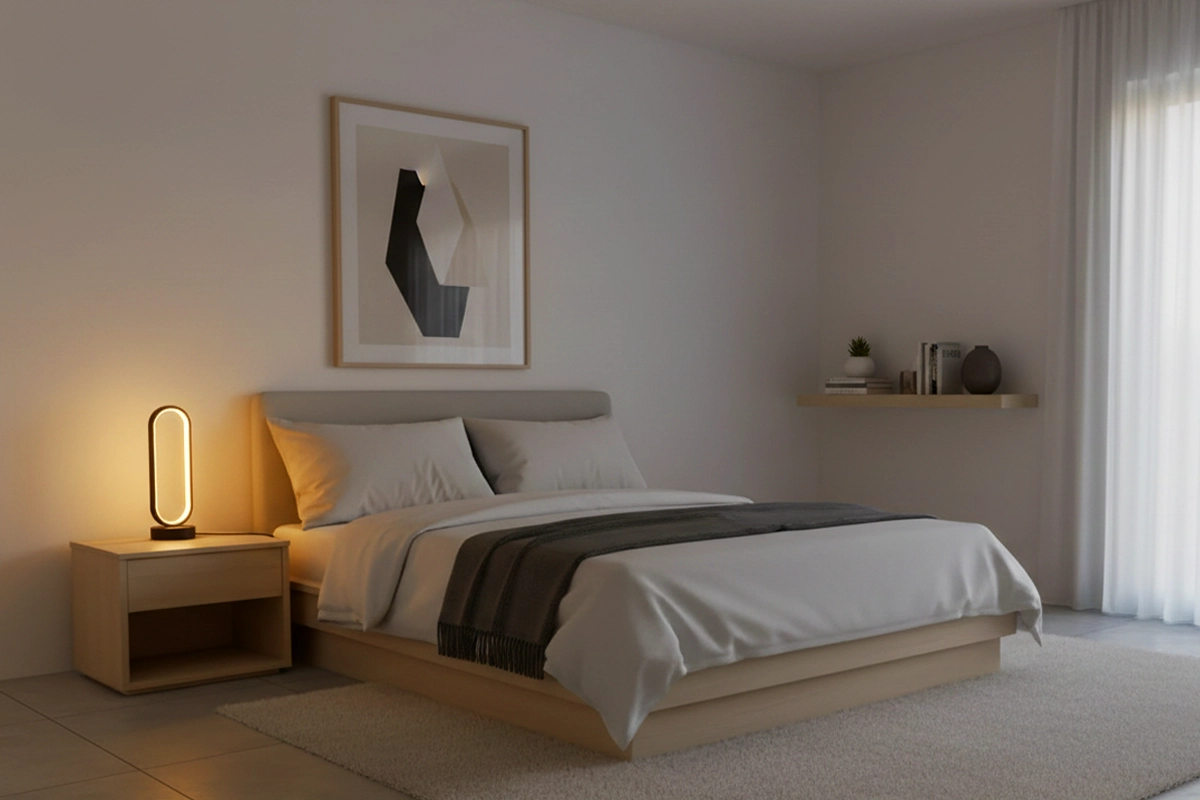 O brilho suave é perfeito antes de dormir. O formato oval encaixa bem e as várias opções de luz são super úteis para ler ou relaxar.