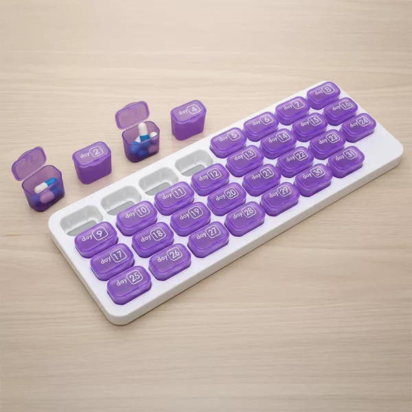 Assuma o controle das doses diárias usando cápsulas numeradas simples. Ortorex facilita o armazenamento de vitaminas e medicamentos para todos. Planeje com antecedência para trinta e um dias sem confusão ou estresse. Cada cápsula mantém tudo visível, seguro e protegido ao longo do mês.