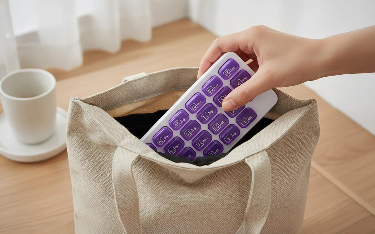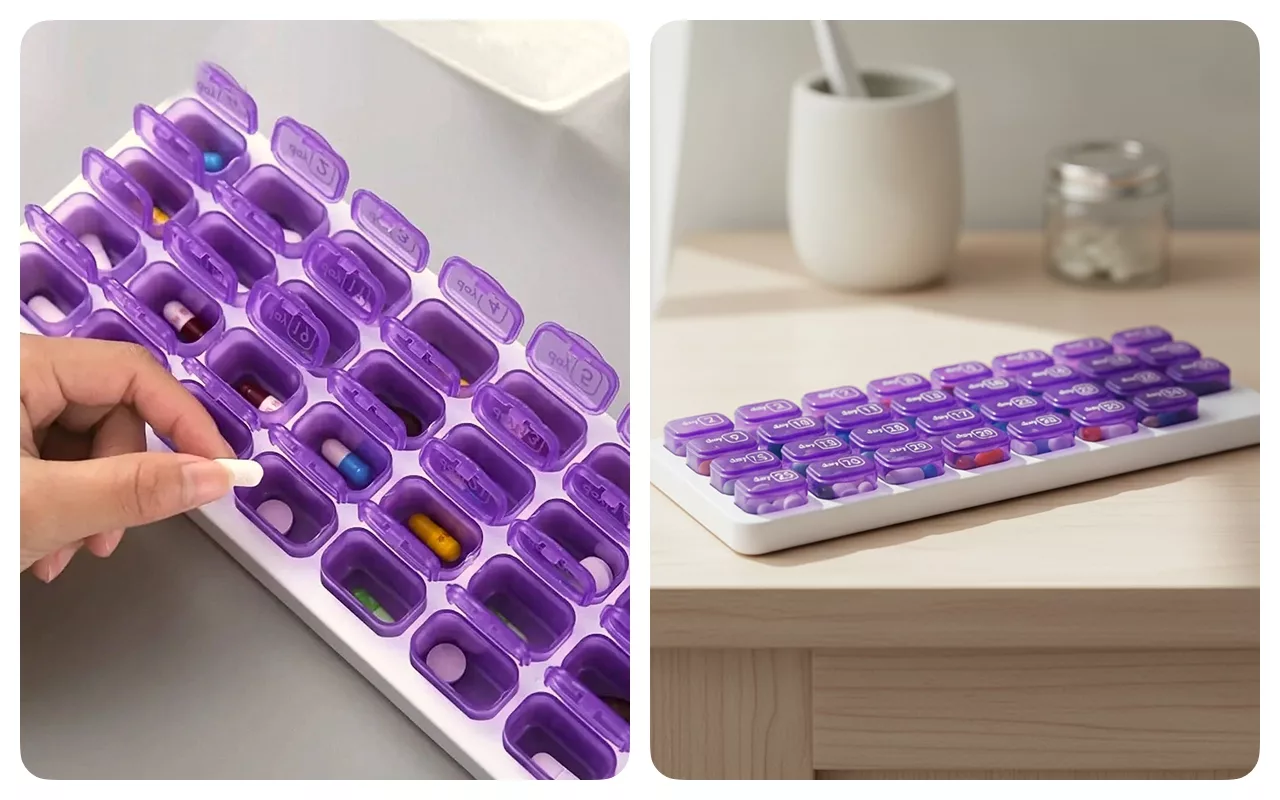 Não tem mais comprimidos quebrados! As caixas vedadas mantêm tudo fresco e seguro. Cabe bem em qualquer lugar, em casa ou em viagens.