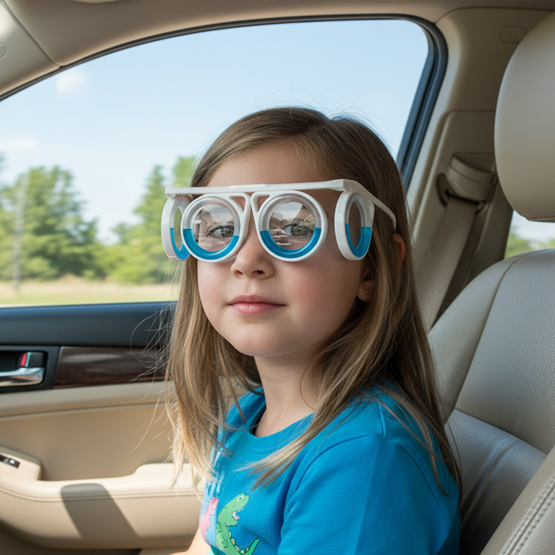 Fiz uma viagem de carro super longa e não senti enjoo nenhuma vez. Agora esses óculos fazem parte da bagagem em todo feriado!