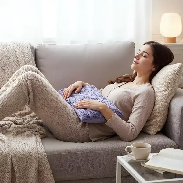 Este envoltório macio de velo é o meu preferido em noites frias. Eu aqueço-o, coloco-o sobre o estômago, e ele alivia as cólicas e ajuda-me a relaxar.
