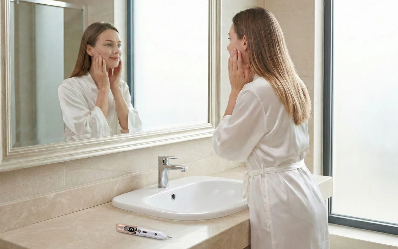 A tecnologia de íons elétricos trata marcas protegendo as áreas saudáveis. A cura é suave e evita produtos químicos agressivos ou riscos.