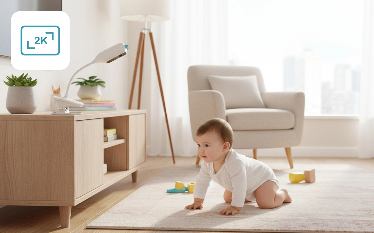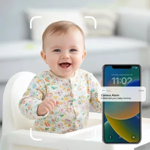 Veja todos os cantos com uma câmera rotativa. Nada escapa do seu olhar, mantendo seu filho seguro a cada minuto.