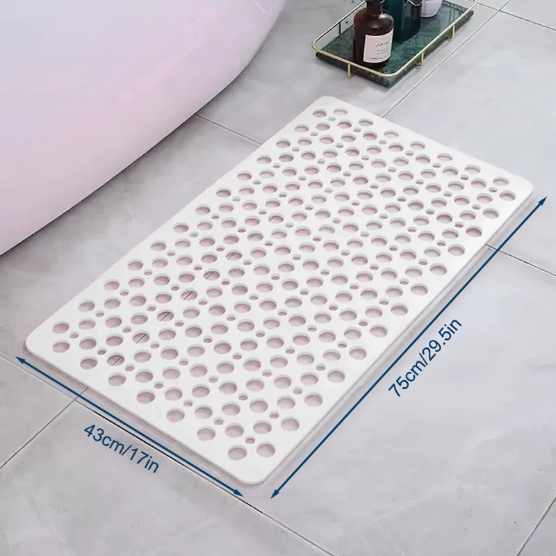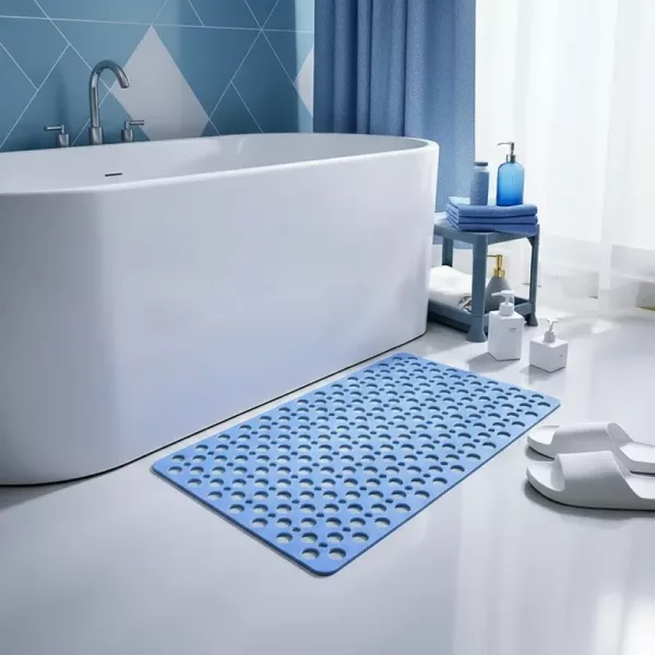 A minha esposa tem problemas nos joelhos, então comprei este tapete para mais segurança. Ele fica firme, mesmo quando as crianças tomam banho com pressa, e os relevos macios são relaxantes.