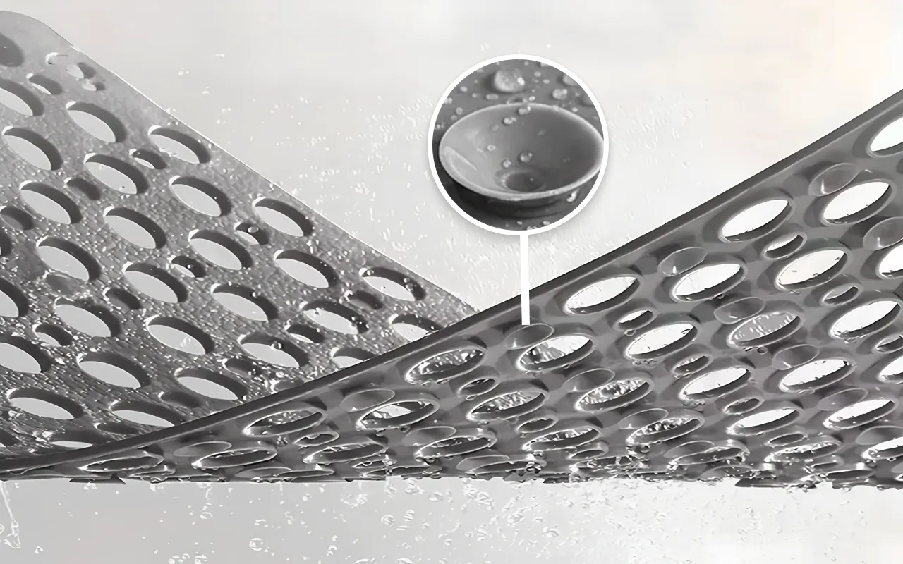 Ventosas de alta resistência mantêm o tapete firmemente no lugar sobre azulejos molhados. Sua família se movimenta com confiança, livre de escorregões repentinos.