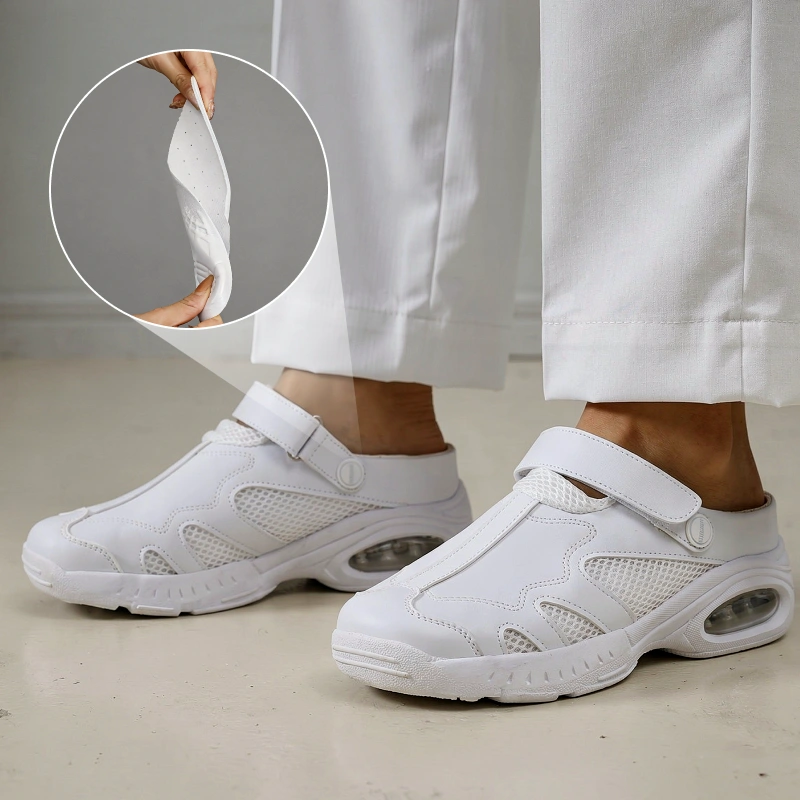 As palmilhas macias com almofada de ar reduzem o impacto e previnem dores. Você se sentirá renovado mesmo após horas andando ou em pé.
