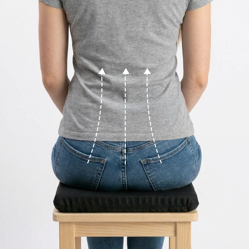 A distribuição uniforme do peso reduz o desconforto causado por ficar sentado por muito tempo. Sinta menos tensão na região lombar e no cóccix.