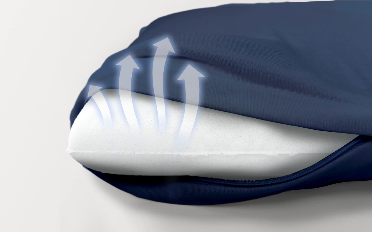 O ar flui facilmente pelo material de espuma de memória. Durma mais fresco e acorde revigorado todas as manhãs.