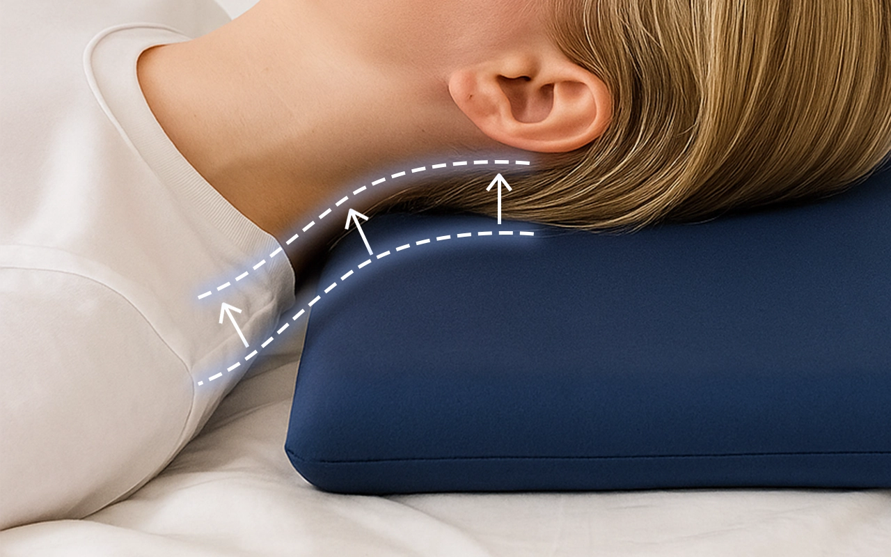 A tensão desaparece enquanto sua cabeça repousa suavemente sobre o travesseiro. Isso garante conforto para seu pescoço e parte superior das costas.