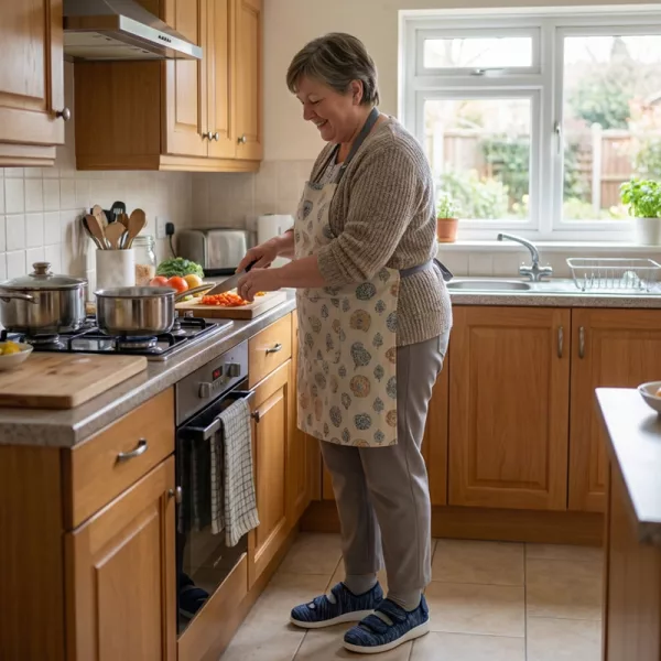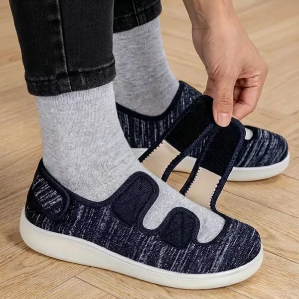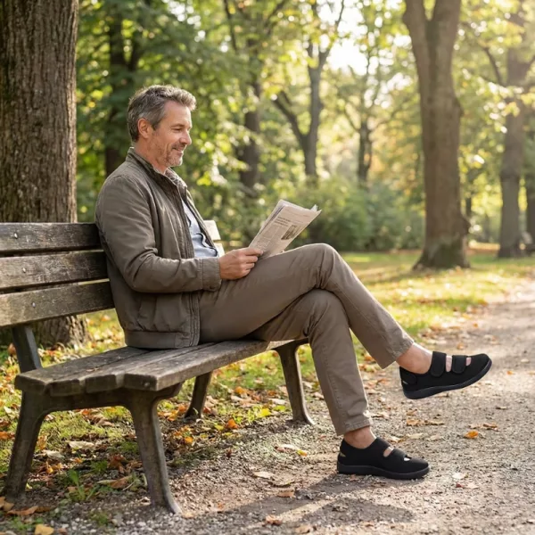 Calçá-los leva apenas alguns segundos graças ao simples design de enfiar o pé e ao fecho em Velcro. Isso economiza tempo e elimina a frustração de quem tem dificuldade para se abaixar.
