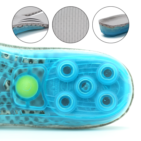 Tecnologia de mola exclusiva absorve impactos e reduz a tensão muscular. O alívio é rápido, ajudando calcanhares e arcos doloridos a se recuperarem rapidamente.