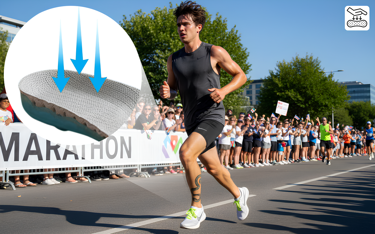 Coloquei nos meus tênis de tênis e corri mais rápido porque meus arcos não doeram. A almofada macia é incrível para corrida.