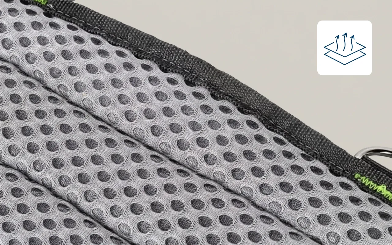 O acolchoamento da ferramenta Ortorex envolve suavemente a sua cintura durante os turnos. O forro respirável permite a circulação constante de ar, evitando o suor pegajoso.