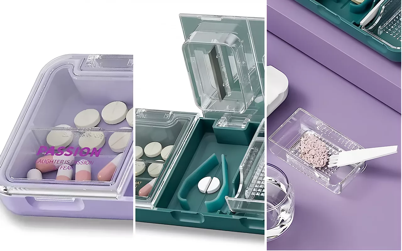 Três principais funções combinadas em um único dispositivo simples. Armazene, divida e esmague comprimidos sem sujeira ou complicação.