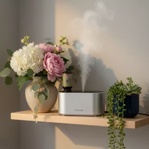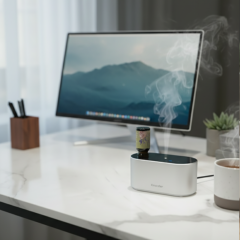 Não precisa de água; óleos essenciais puros perfumam seu ambiente. Esqueça vazamentos, sujeira ou barulho com um simples toque.