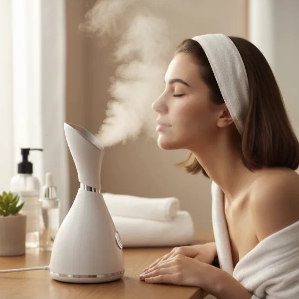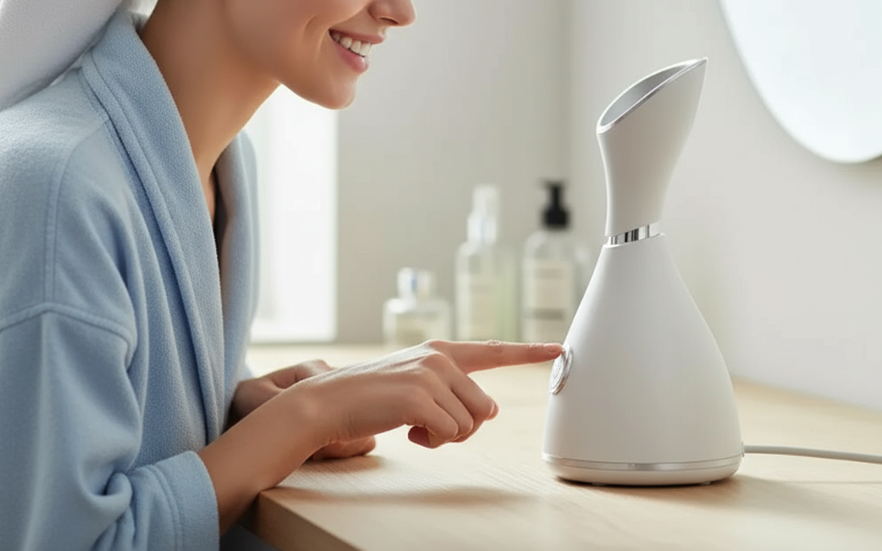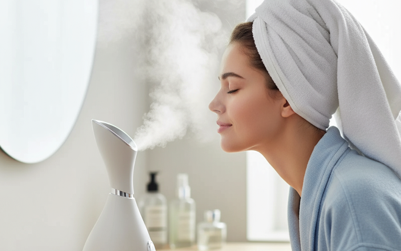 Meu rosto costumava descamar no inverno. Agora, só um minuto com esse vaporizador e minha pele não descasca mais.