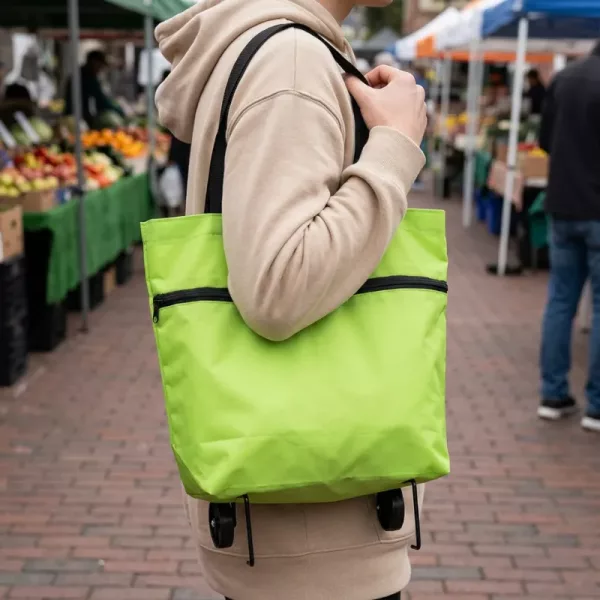 Uso o carrinho para o mercado de produtores. A estrutura forte e o tecido resistente mantêm frascos e fruta em segurança, e as rodas silenciosas não incomodam os vizinhos de manhã cedo.