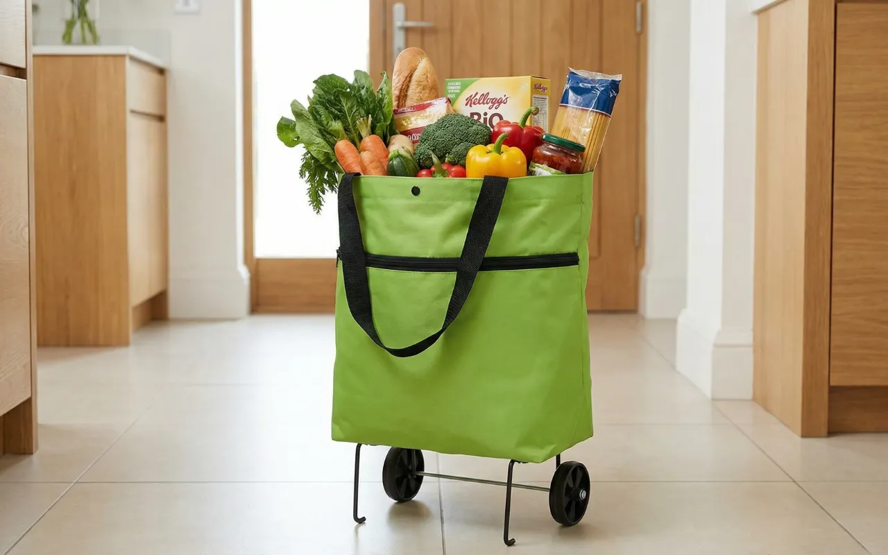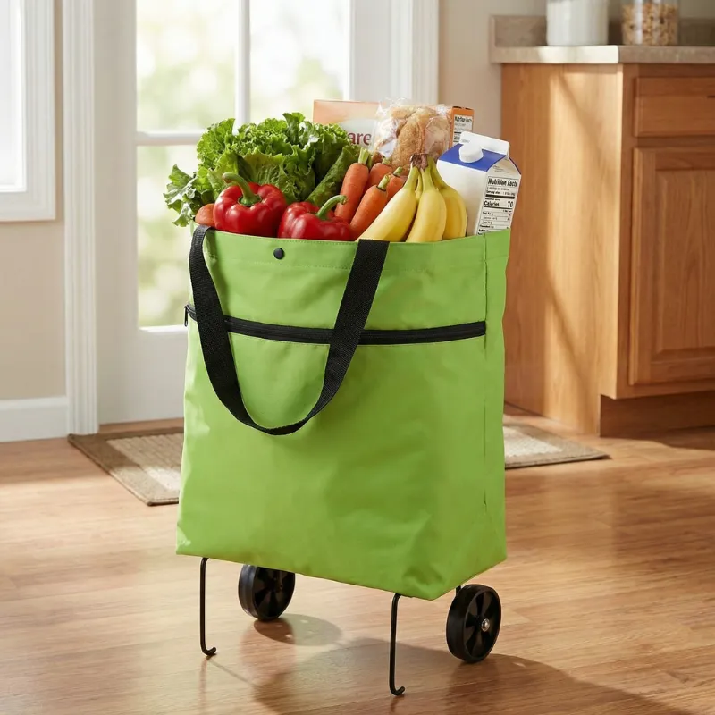 Uso o carrinho para o mercado de produtores. A estrutura forte e o tecido resistente mantêm frascos e fruta em segurança, e as rodas silenciosas não incomodam os vizinhos de manhã cedo.