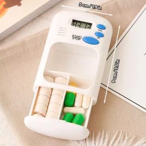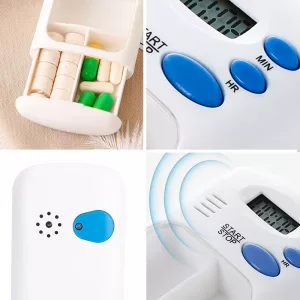 O alarme do organizador é incrível. Dá lembretes altos e tem espaço suficiente para todos os meus comprimidos. Muito útil para a rotina diária.