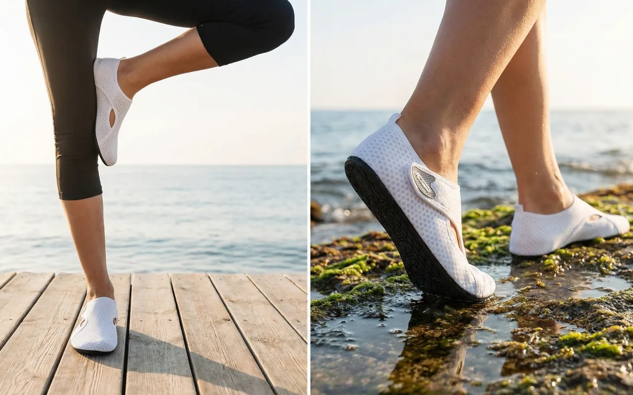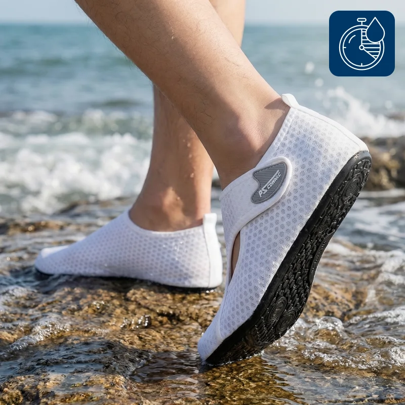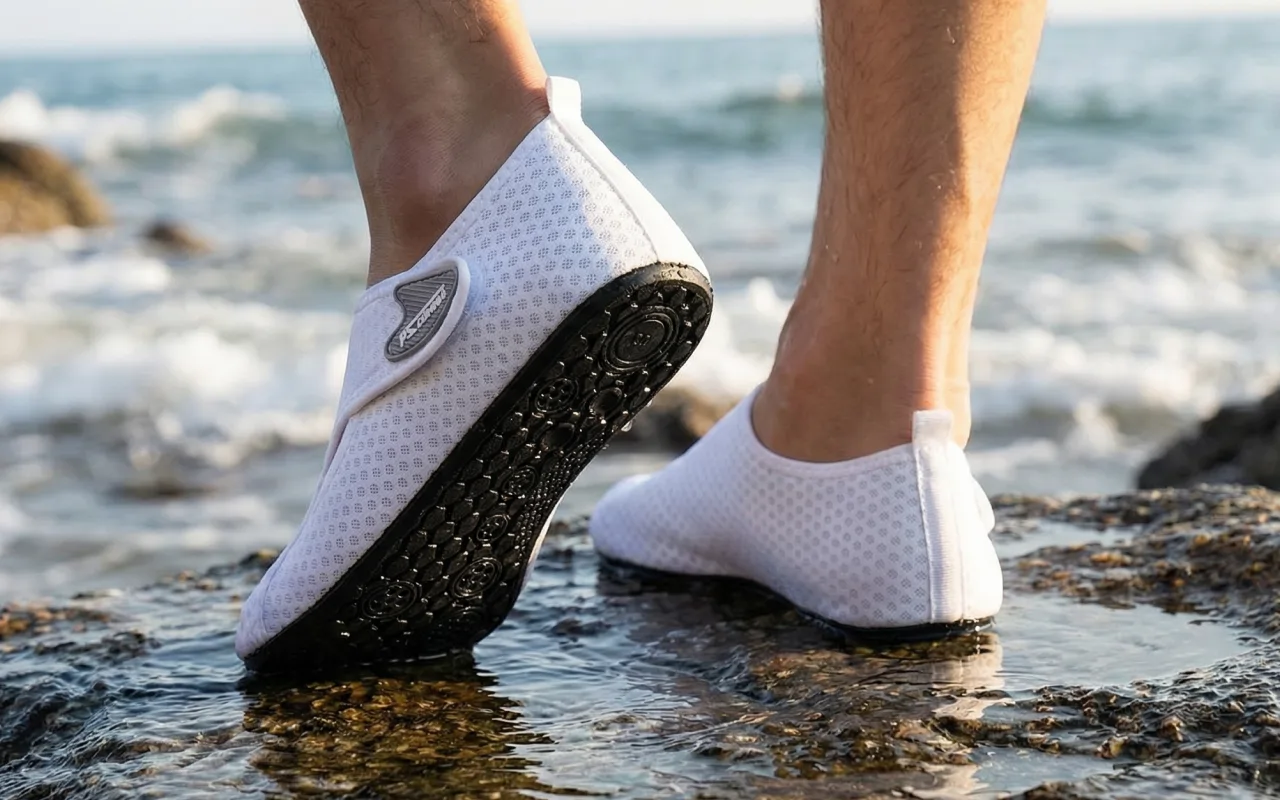 Solas especiais evitam escorregões indesejados em rochas ou azulejos molhados. Sinta-se seguro onde quer que pise, da piscina à praia.