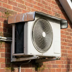 Nosso ar-condicionado externo parece novo, mesmo após as tempestades. Feliz por manter a sujeira afastada e muito fácil de remover quando necessário.