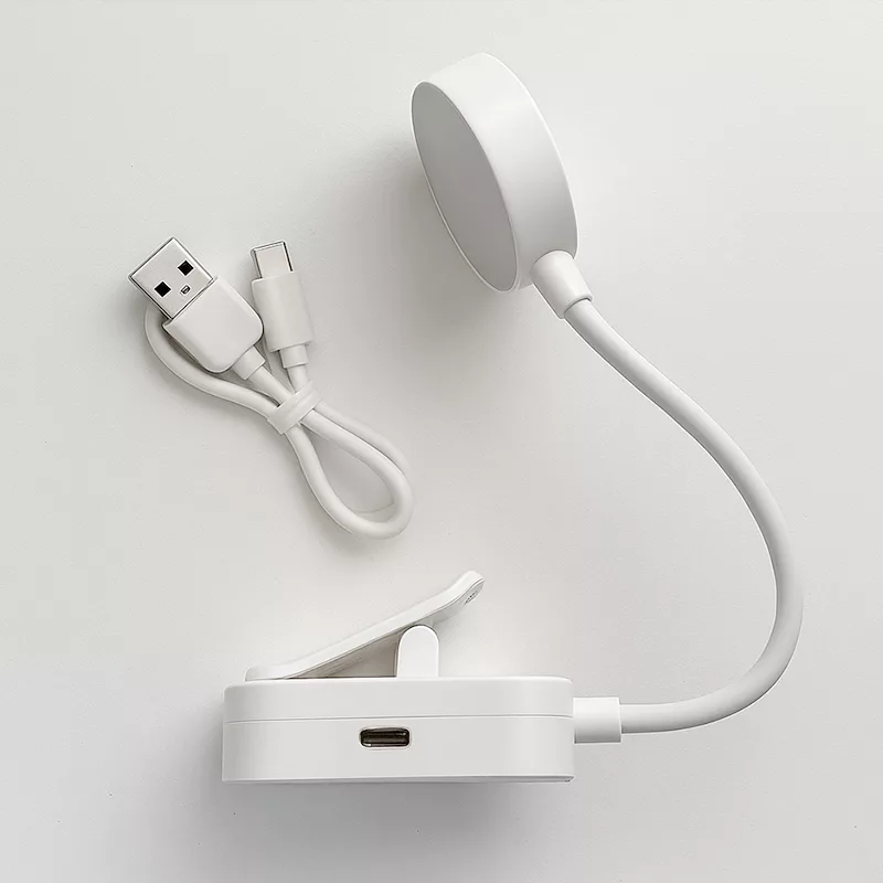 Prenda em livros, golas ou mesas sem dificuldade. O design de 360 graus ilumina exatamente onde você precisa, sempre.