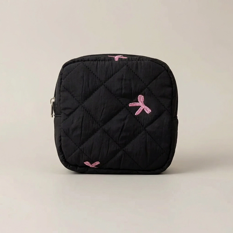 Design fofo e cabe mais que só absorventes. Guardo algumas moedas e lenços umedecidos lá também. Muito prático de ter por perto.
