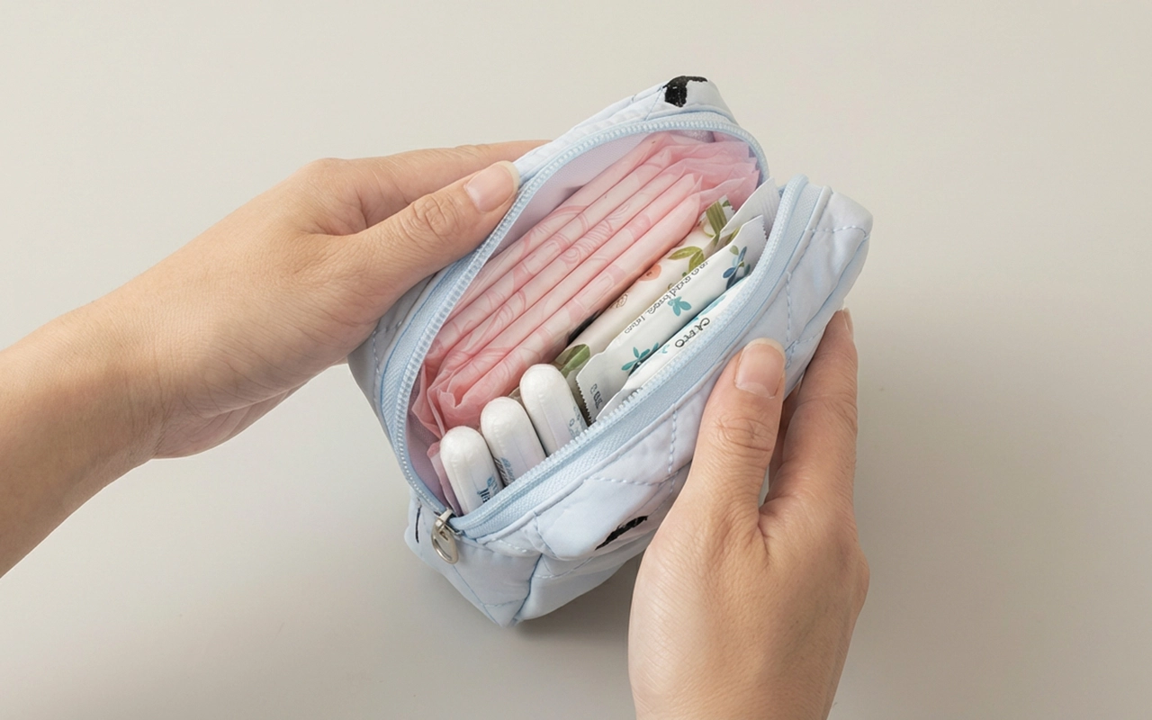 Esse porta-absorventes me salva sempre que preciso trocar rápido. Cabe facilmente na minha bolsa e ninguém percebe o que tem dentro.