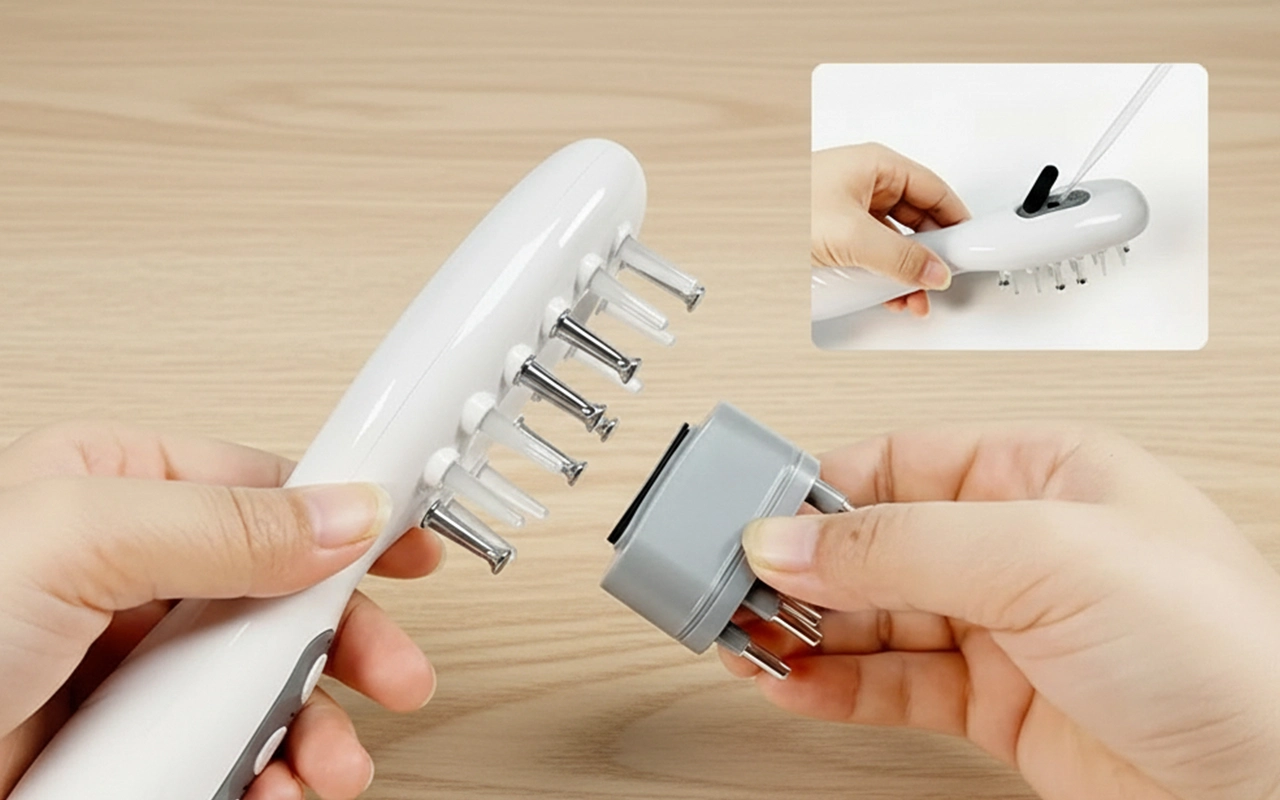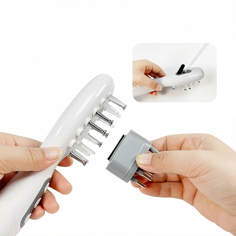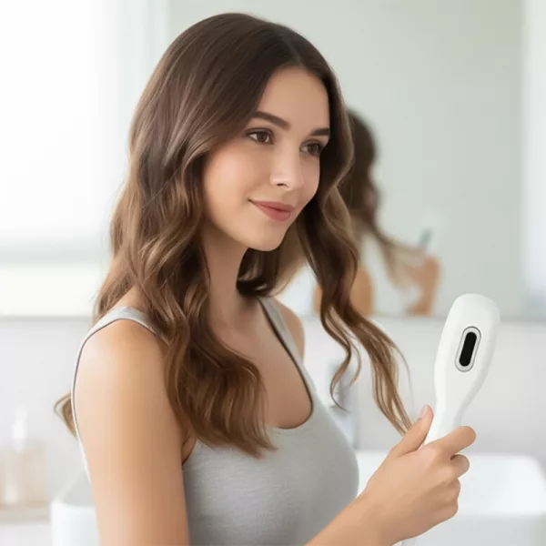 Essa escova massageadora é divertida de usar. As luzes coloridas são legais e fazem meu couro cabeludo coçar menos. Meu cabelo está mais macio do que nunca.